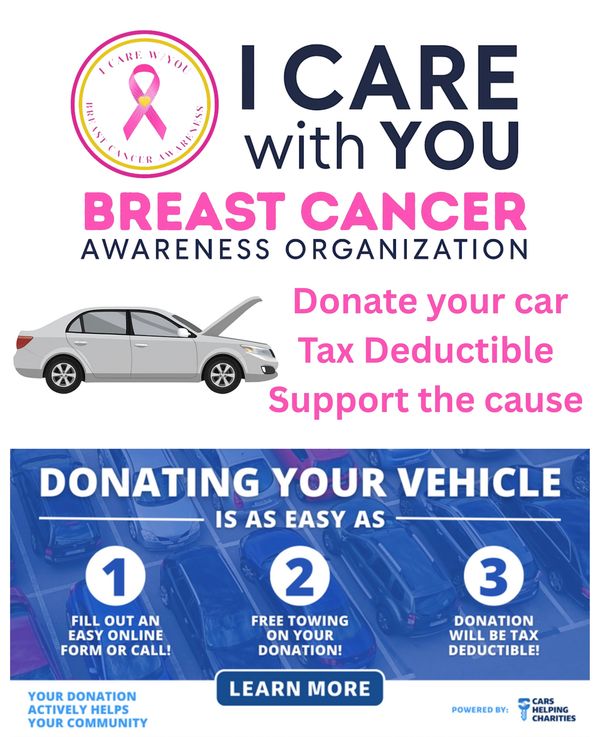 Cars Helping Charites has partnered with I Care w/ You Breast Cancer Awareness Organization giving you the opportunity to donate your car to support breast cancer awareness. Together, we can make a difference.